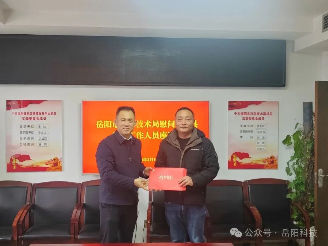 为深入贯彻市委、市政府关于人才工作的决策部署,充分体现对广大科技人才的尊重、关心与爱护,2026年2月9日至13日,岳阳市科技局组织开展春节前优秀科技人才集中慰问,为我市科技创新工作做出突出贡献的科技人才送去关怀与新春祝福。