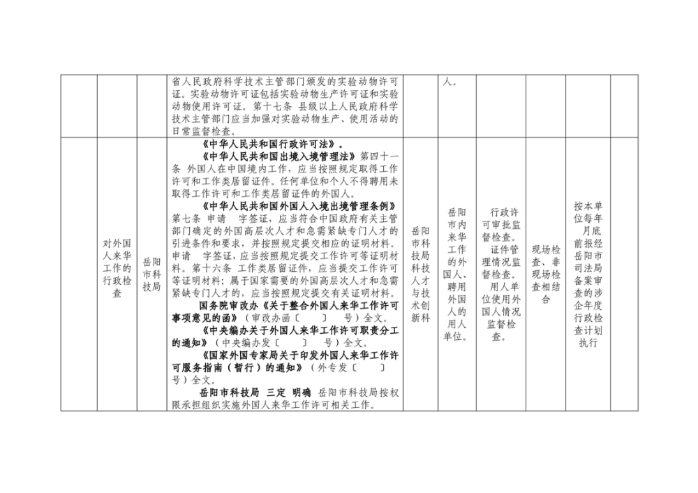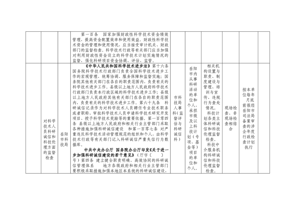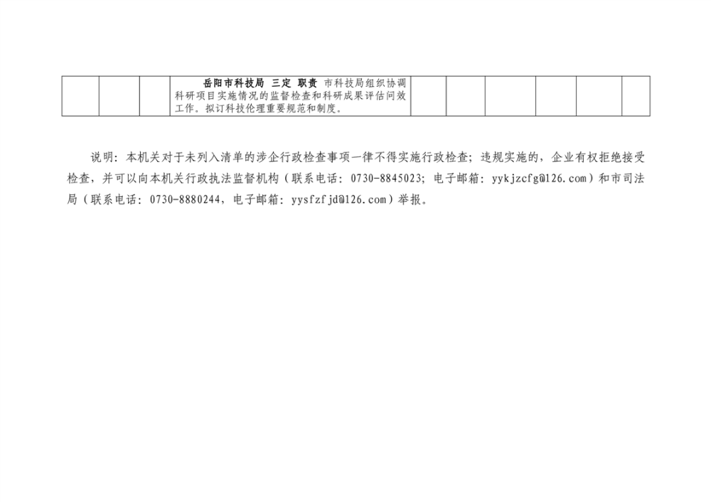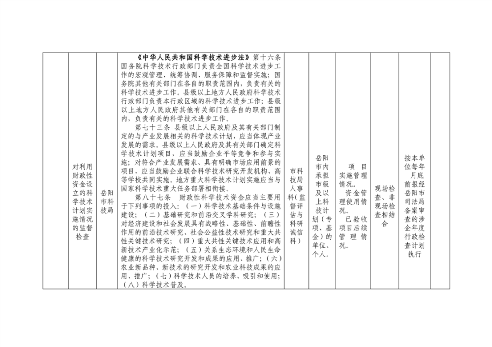 岳阳市科技局涉企行政检查事项清单